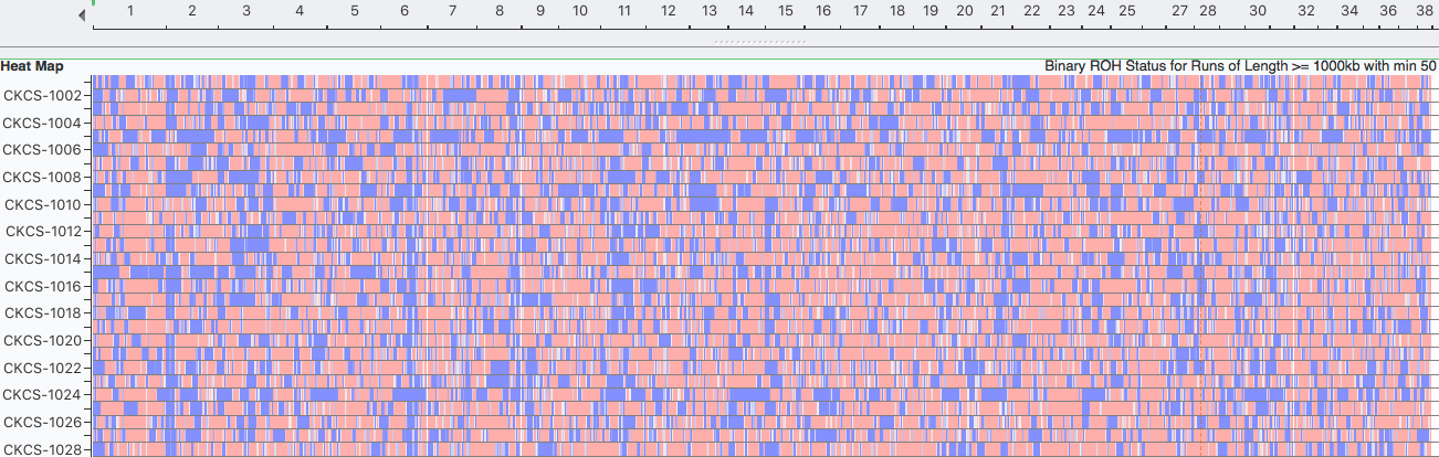 Inbreeding tends to produce runs (blocks) of homozygosity (ROH) on the chromosomes. Over time, the crossing-over of chromosomes during meiosis can split up blocks of homozygosity, so the largest blocks are likely to be the most recent inbreeding and smaller blocks reflect older inbreeding. ROH are used to estimate inbreeding from SNP data.