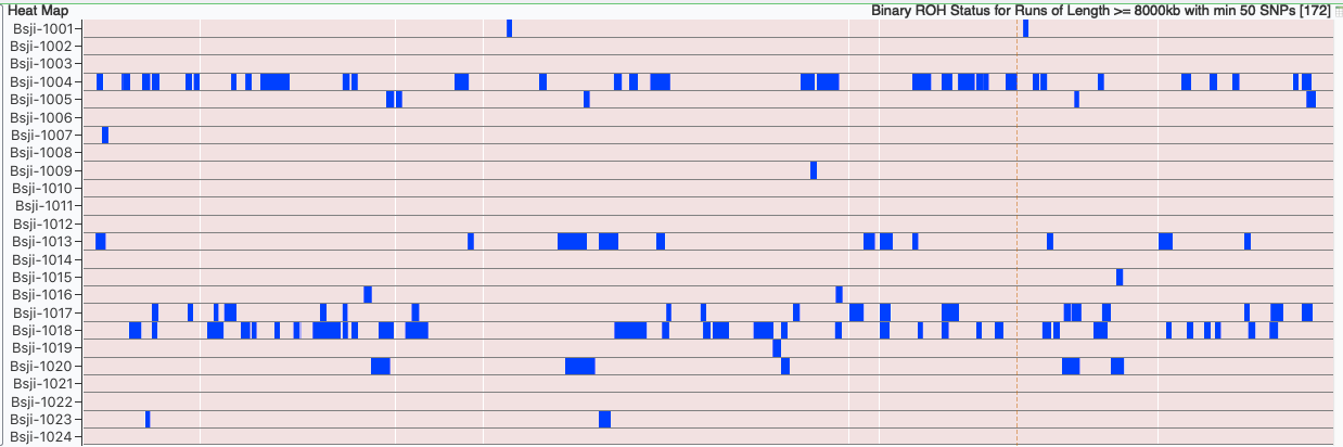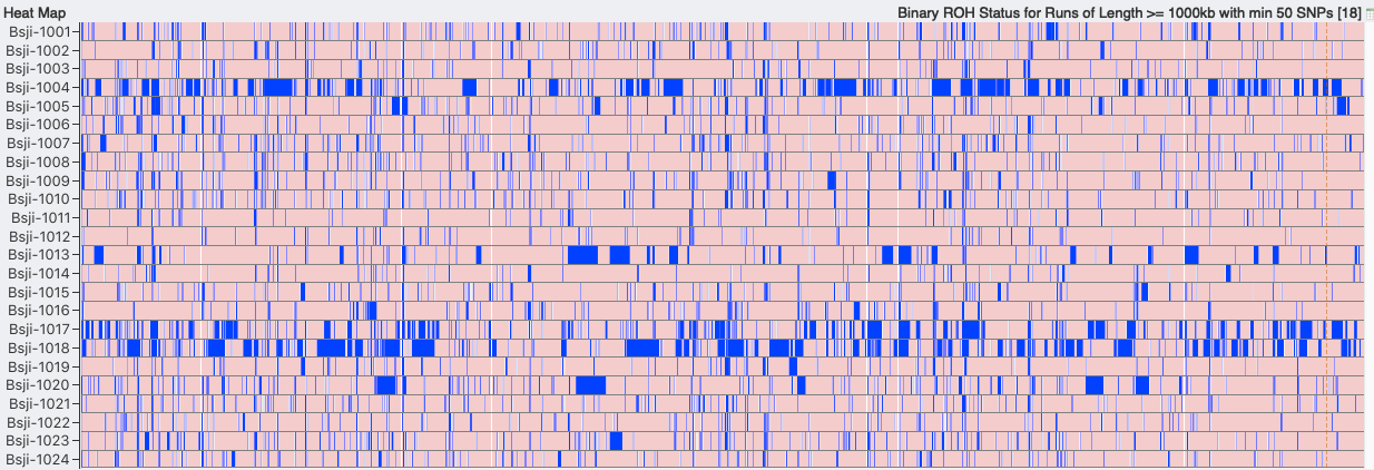 Inbreeding tends to produce runs (blocks) of homozygosity (ROH) on the chromosomes. Over time, the crossing-over of chromosomes during meiosis can split up blocks of homozygosity, so the largest blocks are likely to be the most recent inbreeding and smaller blocks reflect older inbreeding. ROH are used to estimate inbreeding from SNP data.