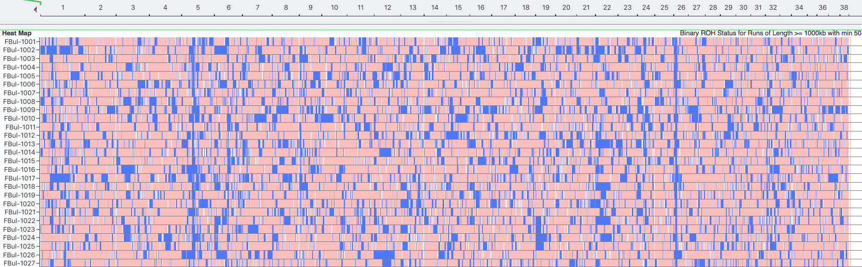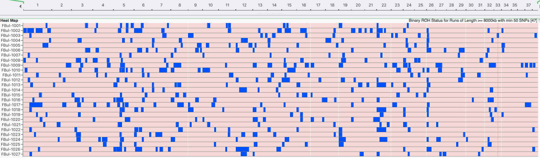 Inbreeding tends to produce runs (blocks) of homozygosity (ROH) on the chromosomes. Over time, the crossing-over of chromosomes during meiosis can split up blocks of homozygosity, so the largest blocks are likely to be the most recent inbreeding and smaller blocks reflect older inbreeding. ROH are used to estimate inbreeding from SNP data.