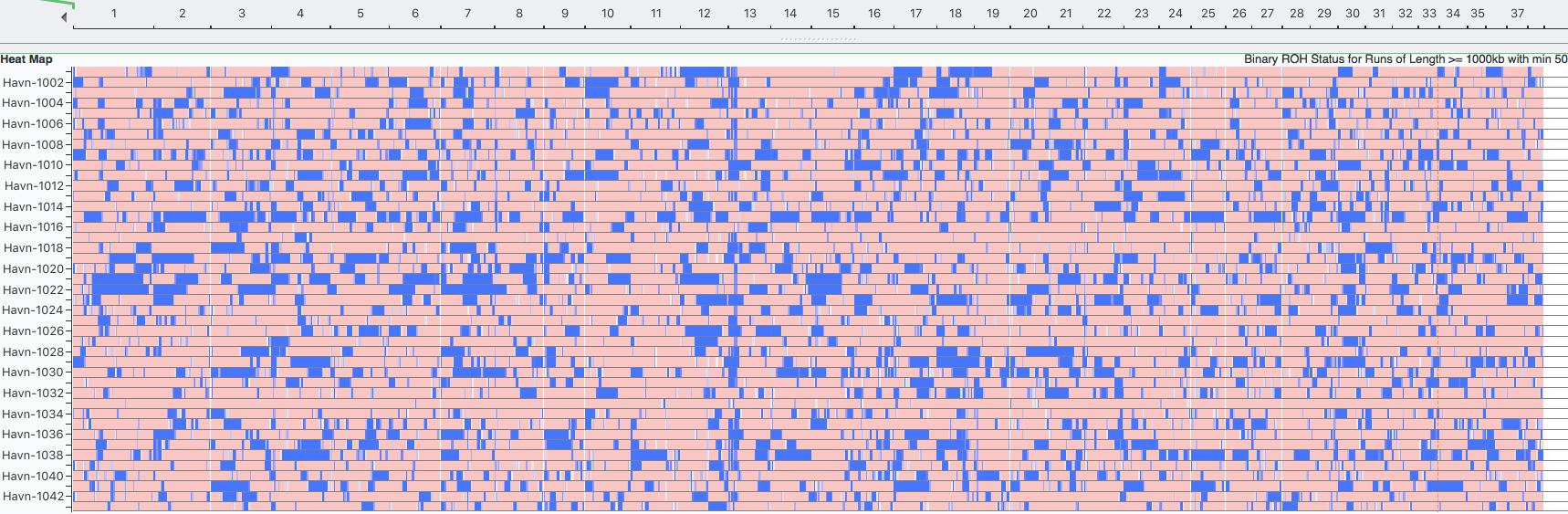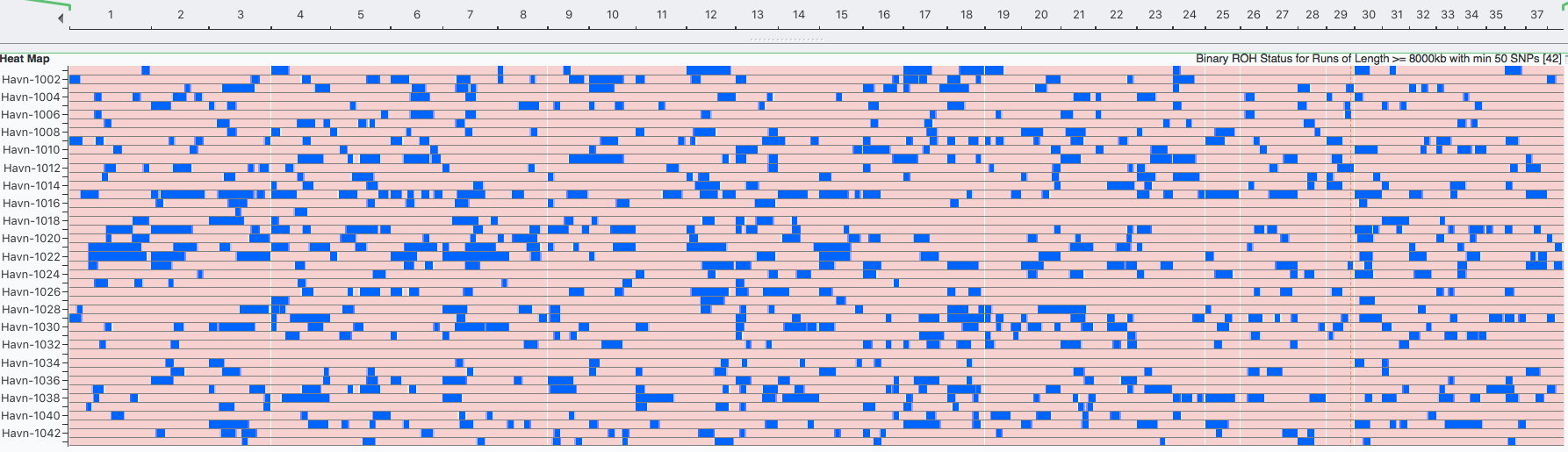 Inbreeding tends to produce runs (blocks) of homozygosity (ROH) on the chromosomes. Over time, the crossing-over of chromosomes during meiosis can split up blocks of homozygosity, so the largest blocks are likely to be the most recent inbreeding and smaller blocks reflect older inbreeding. ROH are used to estimate inbreeding from SNP data.
