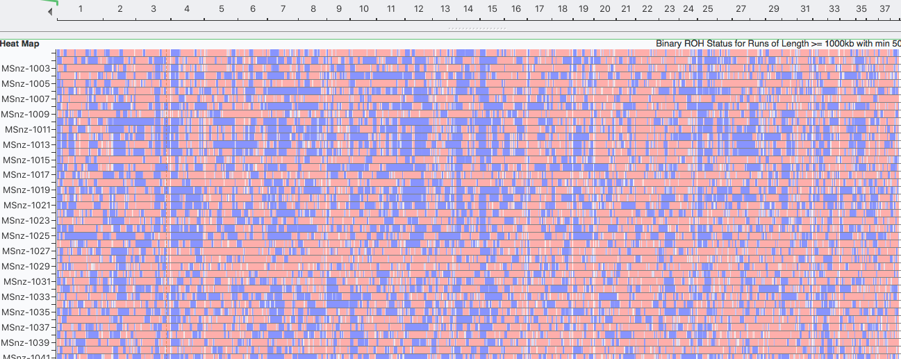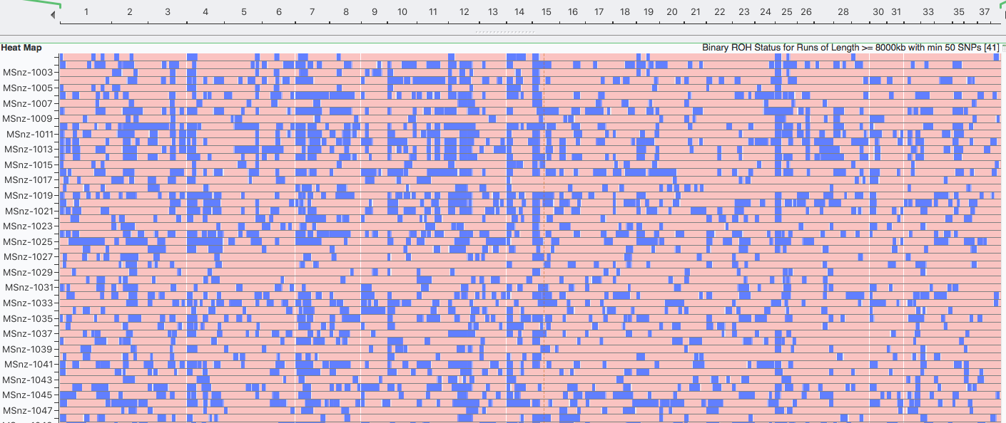 Inbreeding tends to produce runs (blocks) of homozygosity (ROH) on the chromosomes. Over time, the crossing-over of chromosomes during meiosis can split up blocks of homozygosity, so the largest blocks are likely to be the most recent inbreeding and smaller blocks reflect older inbreeding. ROH are used to estimate inbreeding from SNP data.