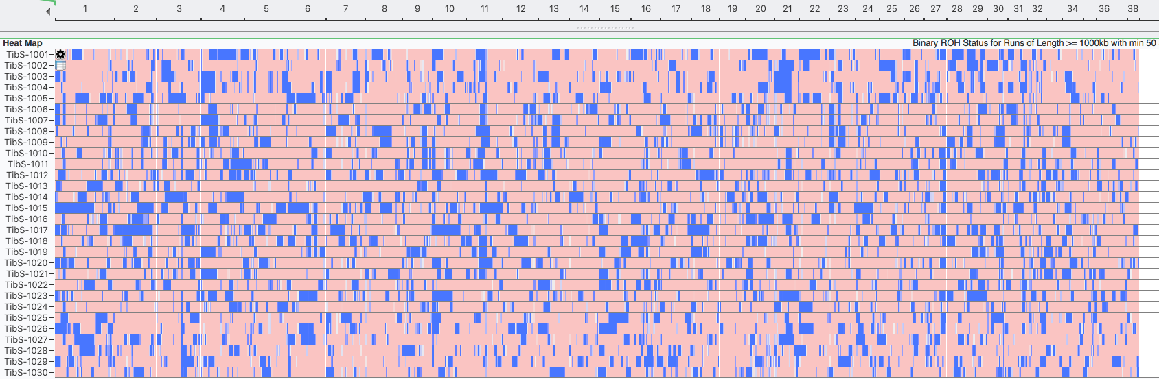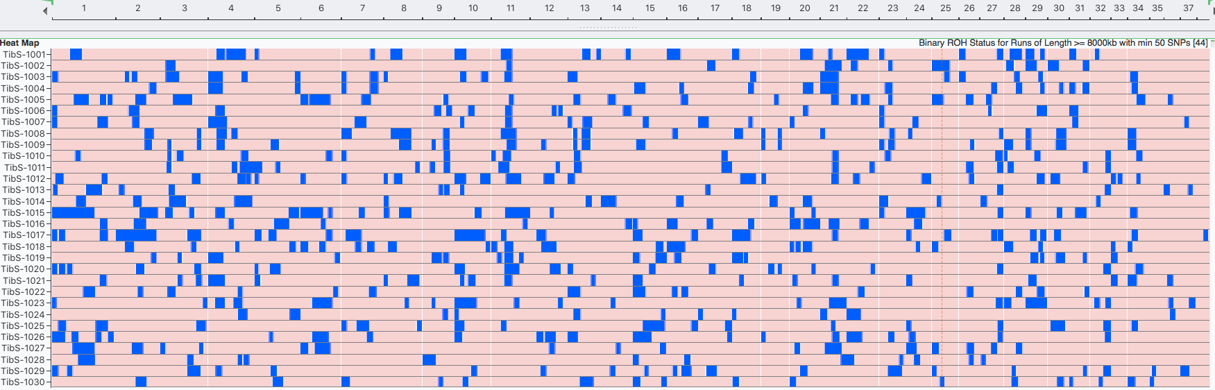 Inbreeding tends to produce runs (blocks) of homozygosity (ROH) on the chromosomes. Over time, the crossing-over of chromosomes during meiosis can split up blocks of homozygosity, so the largest blocks are likely to be the most recent inbreeding and smaller blocks reflect older inbreeding. ROH are used to estimate inbreeding from SNP data.